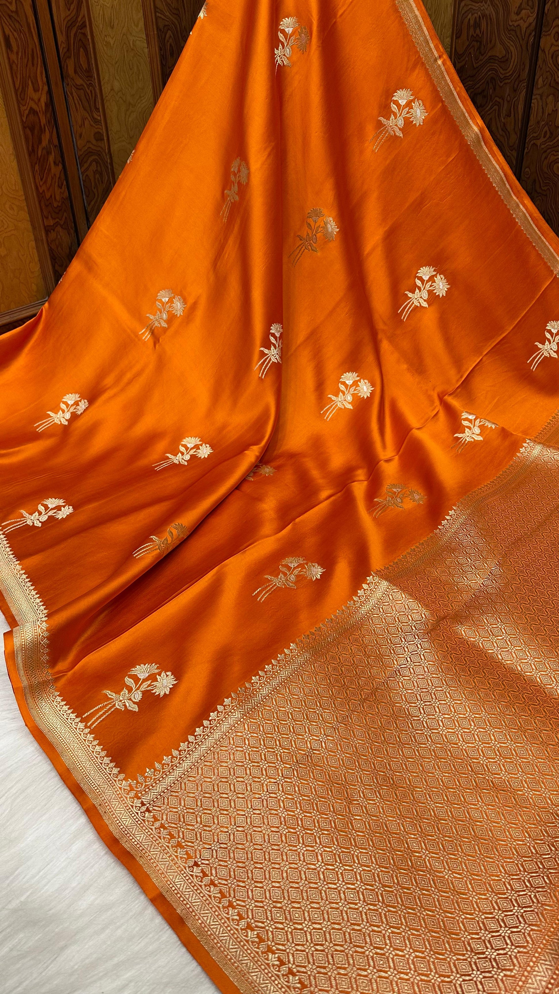 Feature - The handwoven, pure banarasi mashru silk saree gives sheer comfort and a royal look