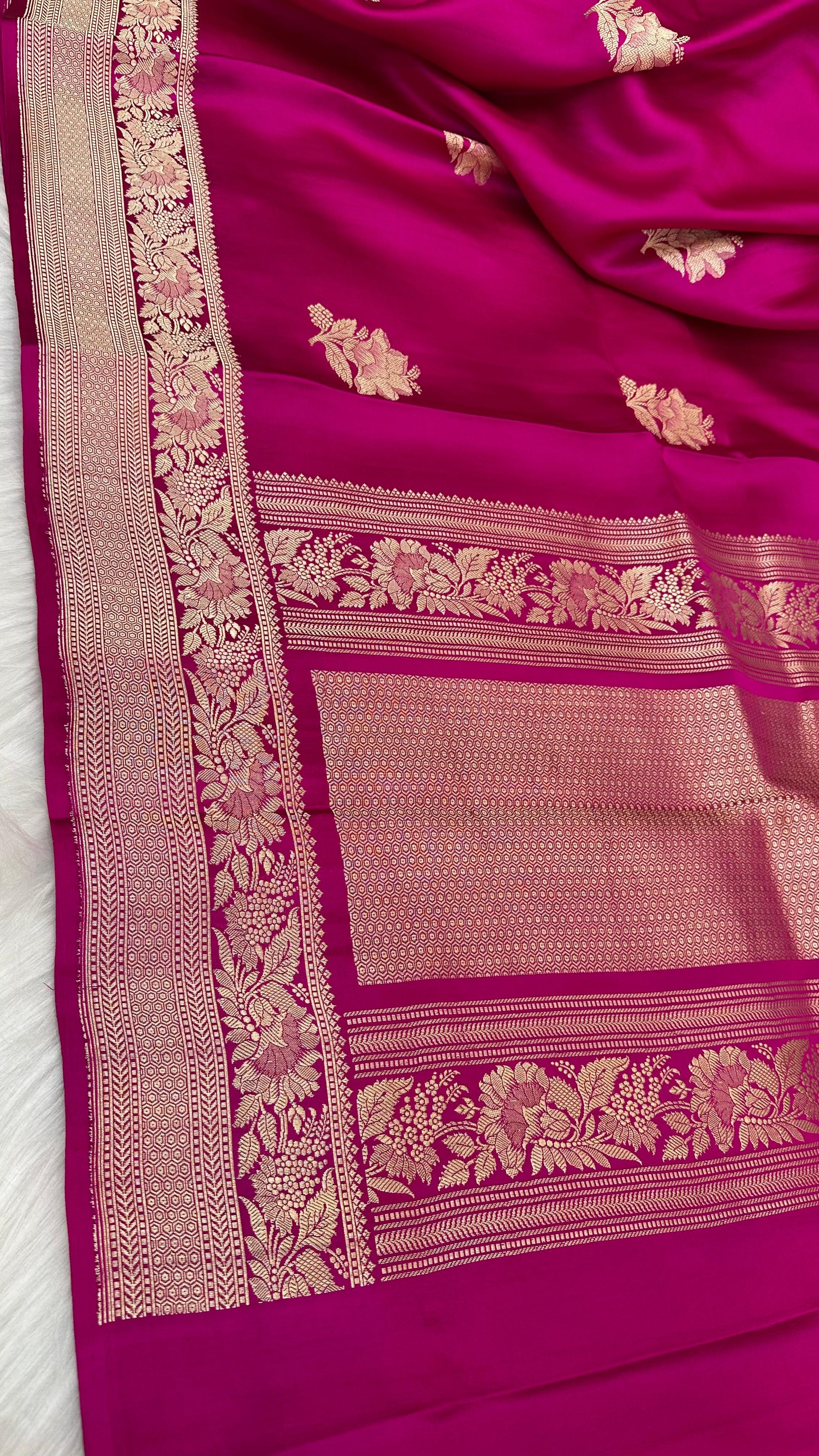 Magenta Mashru Silk Iskart Zari Border Brocad Banarasi Saree
