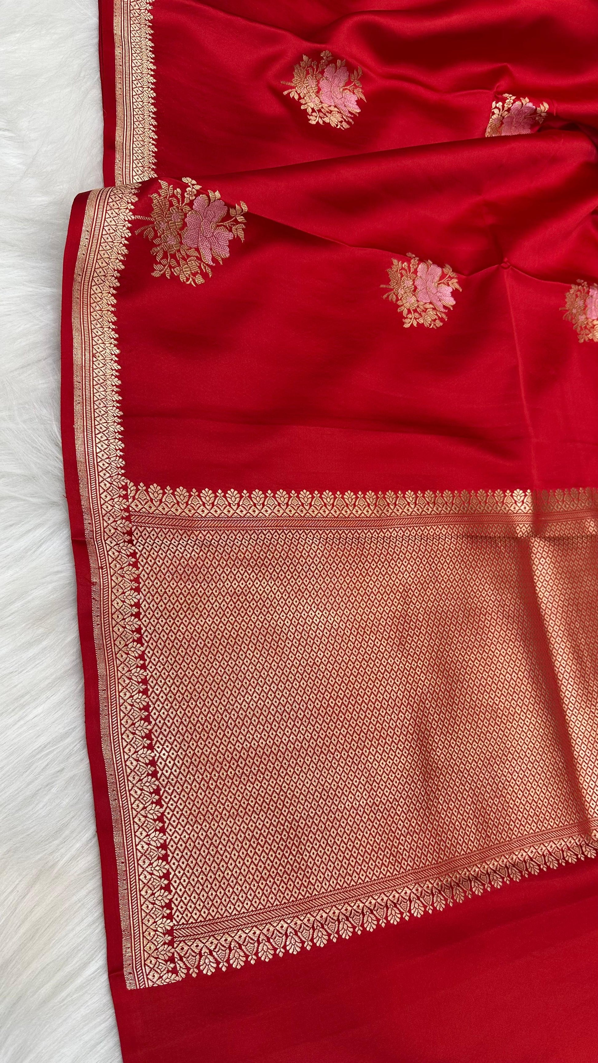 Red Mashru Silk Zari Border Boota Banarasi Saree