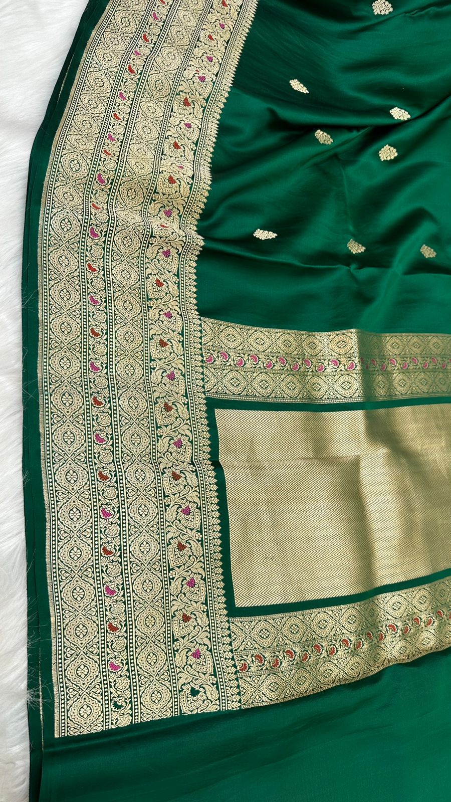 Bottle Green Mashru Silk Iskart Meena Border Banarasi Saree